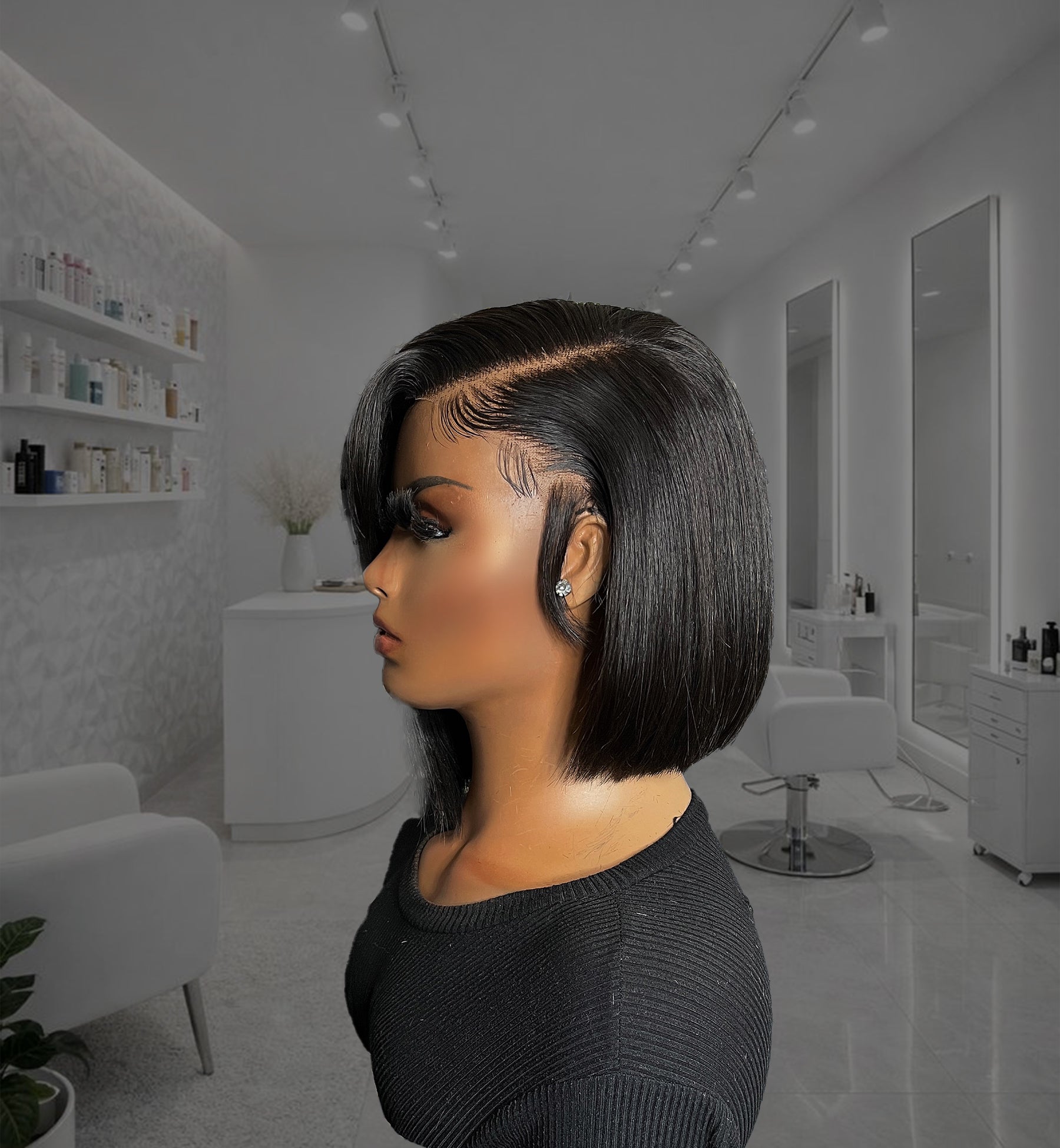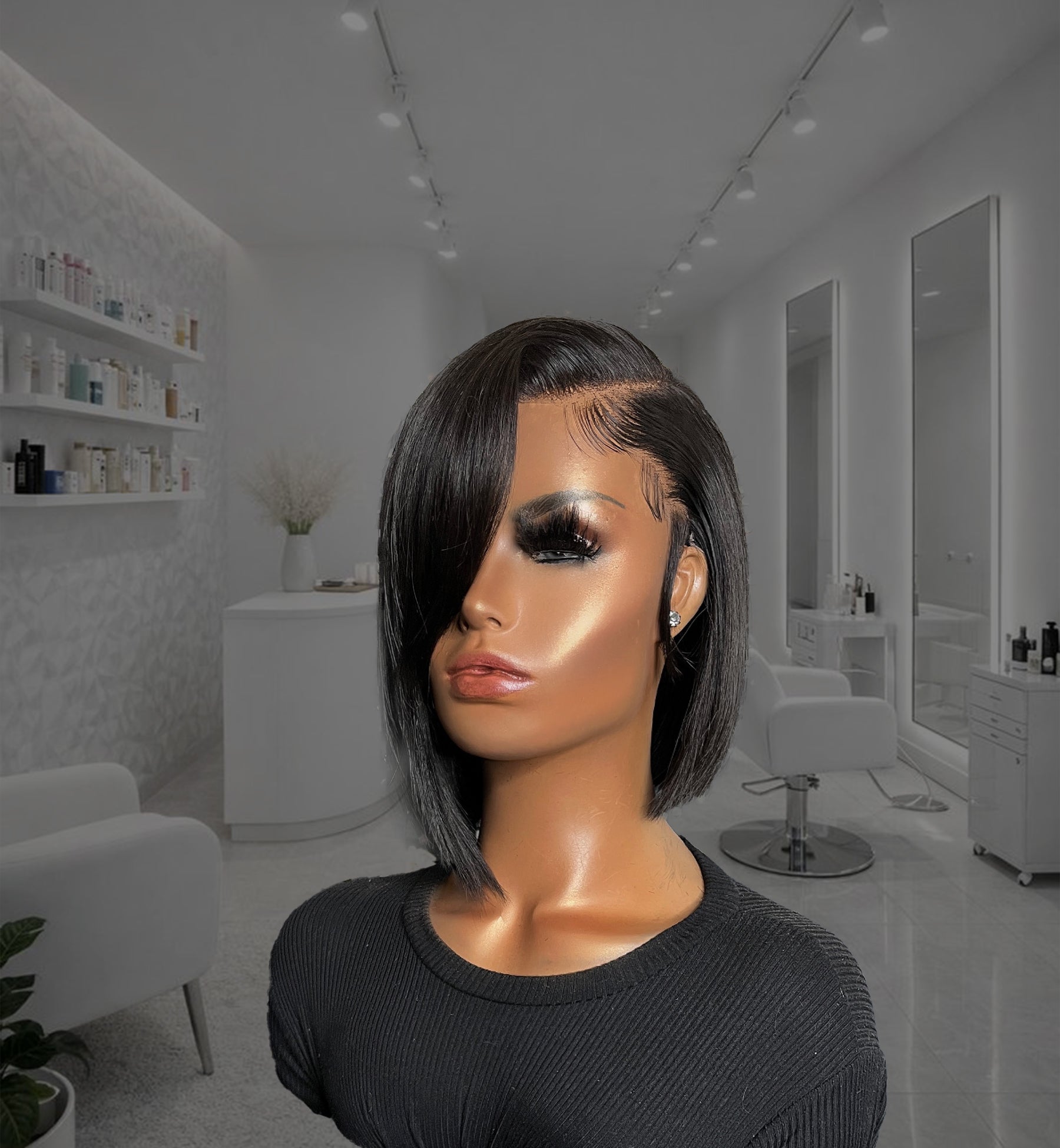 This sleek asymmetrical bob is the perfect blend of sophistication and modern glam.